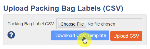 7. Return to the Manage Packing Bag Labels page in FAST. Then click Choose File and select your completed template. Then click Upload CSV.