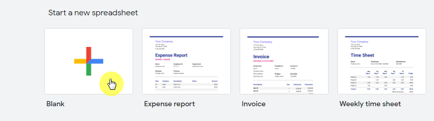 3. In your browser, open a tab to Google Sheets and under the “Start a new spreadsheet” section, click Blank.